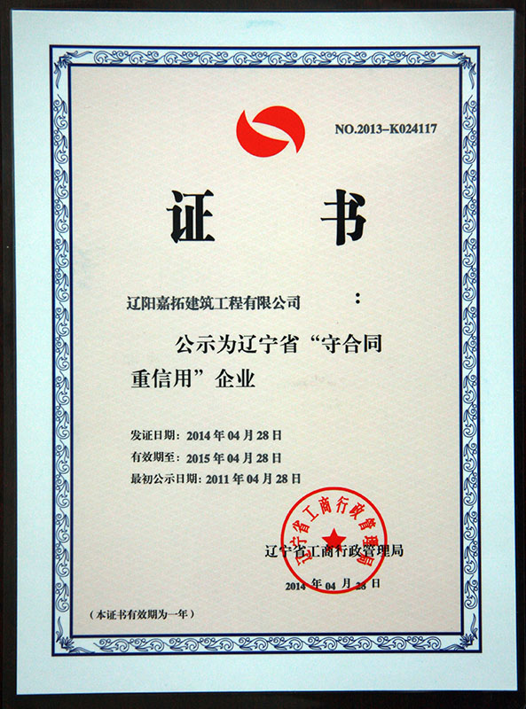 • 2014-2015年度遼寧省“守合同重信用”企業